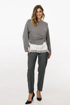 Брюки выполнены из мягкого хлопкового микро-вельвета с добавлением эластана. Изделие комфортно садится по фигуре и не сковывает движения. Модель с пятью карманами, как у джинсов-скинни дополнена высококачественной фурнитурой с фирменным логотипом бренда. Хорошо комбинируется с вязаным трикотажем, блузками и денимом. Как альтернатива брюкам, в нестрогий офисный дресс-код.