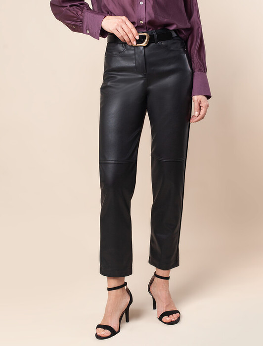 Совместные покупки Каменск-Уральский Женская одежда Брюки — Vilatte Брюки из эластичной, формоустойчивой эко-кожи D24.530 черный