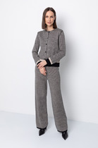Брюки выполнены из мягкой пряжи с кашемиром. Изделие дополнено боковыми карманами и регулирующим шнуром на поясе. Мягкая пряжа очень приятная к телу, поддержит комфорт на протяжении всего дня, при этом не перегревая. Сочетается в костюме с D31.141, D31.147, D31.148, D31.149, D34.202, D34.203, D34.205, D34.206, D37.017, D37.018, D39.358, D39.359, D39.360