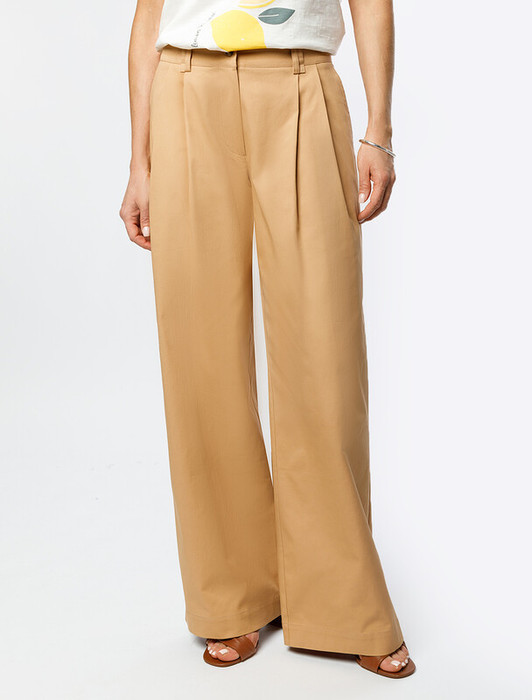 Совместные покупки Каменск-Уральский Женская одежда Брюки — Vilatte Брюки-палаццо из хлопка с защипами D24.268 темно-бежевый
