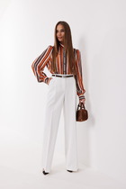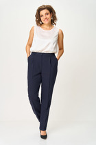 Брюки выполнены из плотного лиоцелла. Модель дополнена карманами и высоким поясом на пуговицах. Ткань изделия отлично держит форму, плавно драпируется и не просвечивает. В теплое время года приятно охлаждает кожу. Добавление синтетических волокон в составе изделия, предотвращает сминаемостьи поддерживает формоустойчивость. Брюки сочетаются в костюме с топом D23.063 и блузкой D29.266, D29.267 и жилетом D27.002