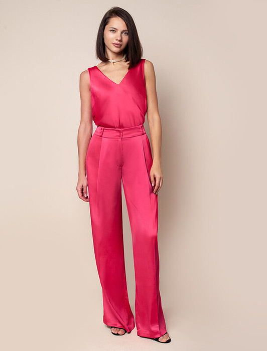 — 22.03 Vilatte Брюки-палаццо из полуматового плотного сатина D24.534 viva magent