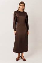 Заказать Vilatte Длинное прямое платье с разрезами из 100% хлопка D42.124 пудра