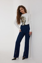Джемпер фактурной вязки выполнен из хлопка с добавлением кашемира. Модель с V-вырезом с вывязанным орнаментом цепи. Мягкая и очень приятная пряжа совершенно не колется, сохраняет тепло при этом не перегревая, гарантируя безупречный комфорт.