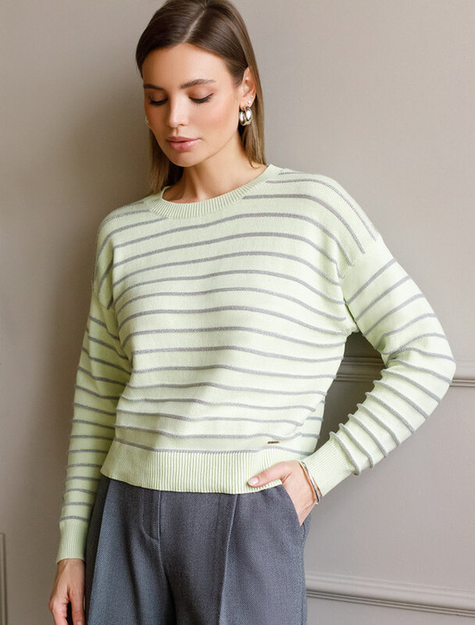 Совместные покупки Каменск-Уральский Женская одежда Джемперы, свитеры, водолазки — Vilatte Джемпер из хлопка с люрексом D39.342 светло-фисташковый