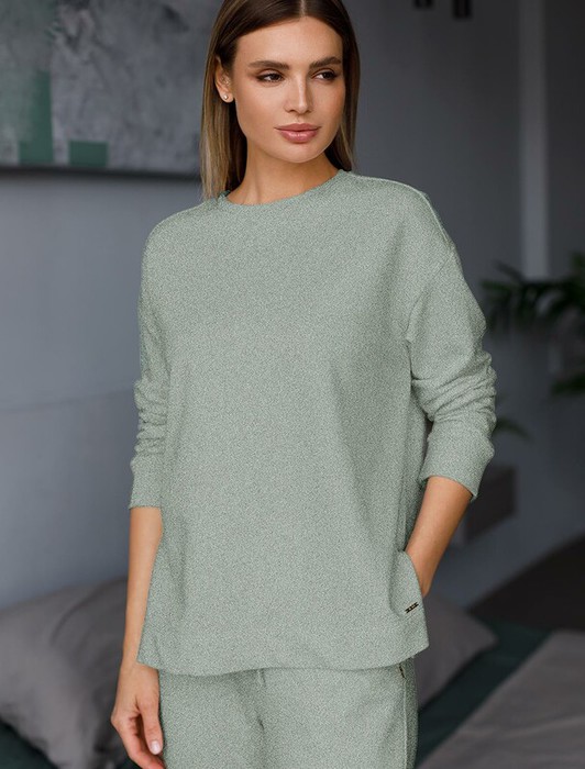 Совместные покупки Каменск-Уральский Женская одежда Домашняя одежда — Vilatte Джемпер из облегченного футера с эластаном D49.054 оливковый меланж