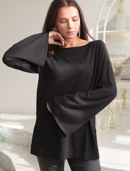 Совместные покупки Каменск-Уральский Женская одежда Джемперы, свитеры, водолазки — Vilatte Джемпер из вискозы тонкой вязки с люрексом D39.319 черный