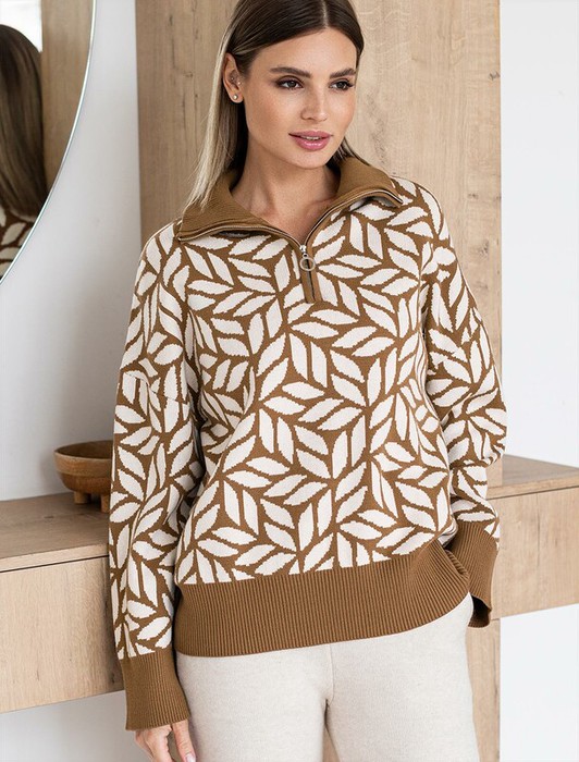27.03 Vilatte Джемпер с воротом на молнии двуслойной жаккардовой вязки с кашеми