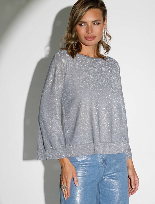 Vilatte Джемпер свободный тонкой вязки из вискозы с люрексом D39.372 серебряный