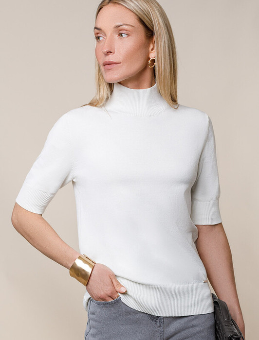 Совместные покупки Каменск-Уральский Женская одежда Джемперы, свитеры, водолазки — Vilatte Джемпер тонкой вязки из хлопка с нейлоном D34.201 натуральный белый