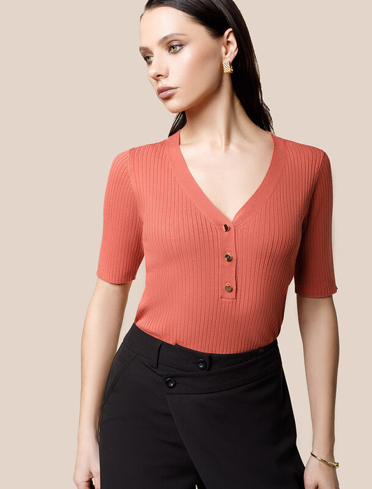 Заказать 22.03 Vilatte Джемпер тонкой вязки из вискозы с нейлоном D39.337 терракотовый