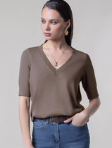 Vilatte Джемпер тонкой вязки из вискозы с нейлоном D39.355 кофейный