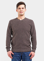 Черно-коричневый джемпер с длинными рукавами выполнен из мягкой хлопковой пряжи с добавлением акрила. Высокий воротник застегивается молнией. За счет переплетения светлых и темных нитей получилась фактурная меланжевая модель, которая, отлично держит тепло и почти не ощущается на теле. Сочетается с футболками, денимом и с чиносами, любой обувью.