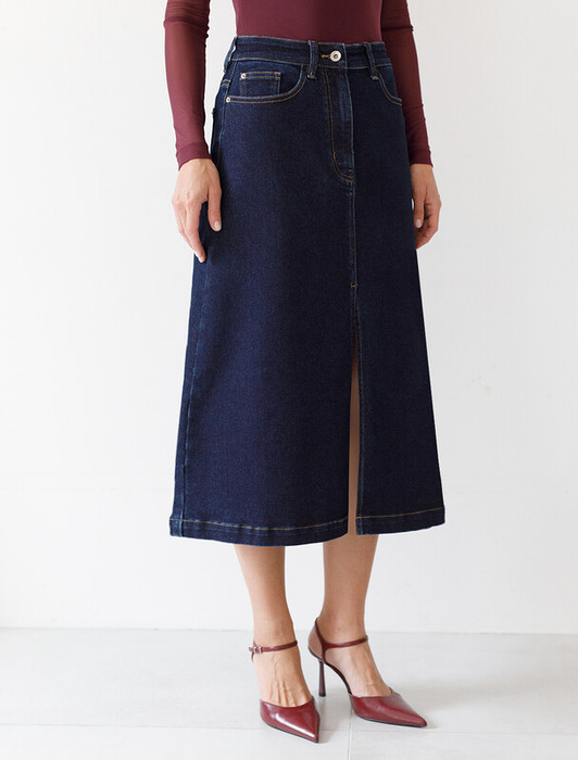 Vilatte Джинсовая юбка из плотной эластичной джинсы 13.8OZ. D56.122 темно-синий