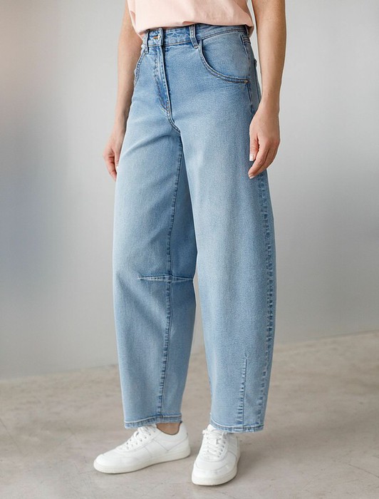 Совместные покупки Каменск-Уральский Женская одежда Джинсы — Vilatte Джинсы barrel с декоративной стиркой из эластичного денима D54.305 голуб