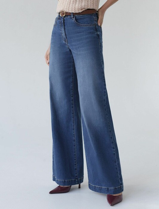 Стильные джинсы трубы синего цвета прямого кроя выполнены из эластичного денима, что делает их особенно удобными для повседневной носки. Декоративная стирка подчеркивает современный дизайн. Джинсы правильного кроя визуально вытягивают силуэт, благодаря эластану в составе аккуратно садятся на любую фигуру, подчеркивая достоинства и обеспечивают максимальный комфорт в течение дня, не сковывая движения. Широкая размерная линейка подходит для разных типов фигур: свободные джинсы комфортны как для обладательниц пышных форм, так и для худеньких. Вы сможете подабрать джинсы на низкий или высокий рост. Плотные джинсы идеально держат форму даже при активном движении и не вытягиваются после долгой носки. Качественная фурнитура, практичные карманы и контрастная строчка делают эти джинсы премиальными. Широкий подгиб добавляет актуальности — такой тренд отлично сочетается как с обувью на каблуке, так и на плоском ходу. Благодаря универсальному дизайну джинсы легко комбинируется с разными элементами гардероба.
