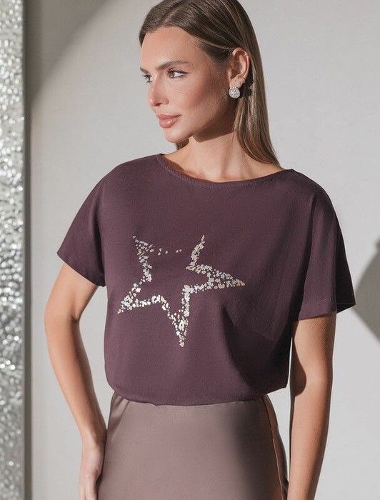 Vilatte Футболка D49.133 бургунди_stars