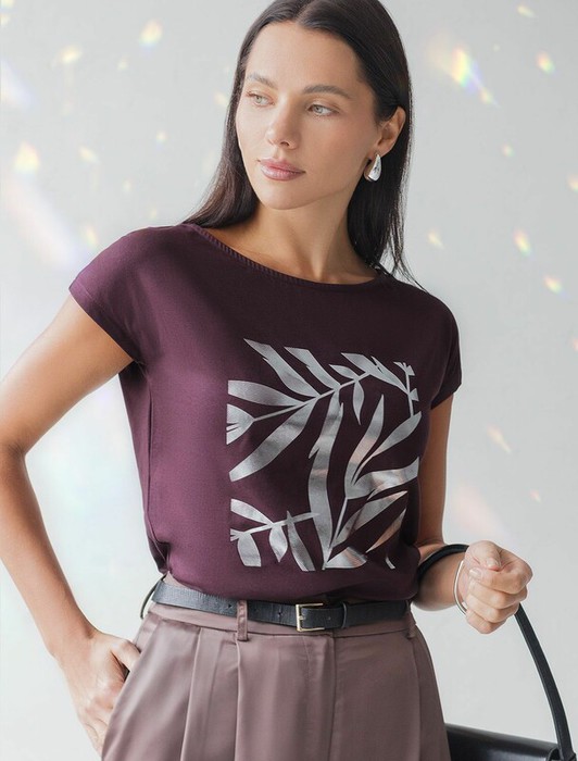 27.03 Vilatte Футболка D49.134 бургунди_листики