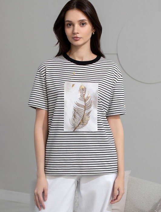 Совместные покупки Каменск-Уральский Женская одежда Футболки — Vilatte Футболка D49.145 белый-черный_перо