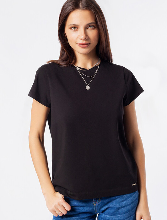 Футболка выполнена из премиального хлопка. Базовая модель, которая хорошо будет сочетаться в гардеробе с любым низом и за счет посадки по фигуре, любым дополнительным верхом вне зависимости сезона. Эластан в составе способствует формоустойчивости и меньшей сминаемости. Изделие украшено логотипом бренда.