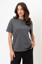 Футболка с цельнокроеным рукавом выполнена из премиального хлопка. Базовая однотонная модель идеально впишется в любой гардероб. V-вырез подчеркивает ключицы и удлиняет шею, хорошо сочетается с жакетами или кардиганами. Изделие дополнено металлическим логотипом бренда.