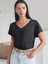 Футболка с цельнокроеным рукавом выполнена из премиального хлопка. Базовая однотонная модель идеально впишется в любой гардероб. V-вырез подчеркивает ключицы и удлиняет шею, хорошо сочетается с жакетами или кардиганами. Изделие дополнено металлическим логотипом бренда.