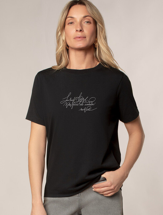 Совместные покупки Каменск-Уральский Женская одежда Футболки — Vilatte Футболка из премиального хлопка с авторским принтом D49.110 черный_ветер