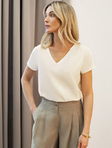 Футболка с V-образным вырезом выполнена из премиального хлопка. Добавление эластана в состав изделия способствует формоустойчивости. Самое высокое качество длинноволокнистых хлопковых волокон обеспечивает комфорт в любое время года. Изделие дополнено металлическим логотипом бренда.