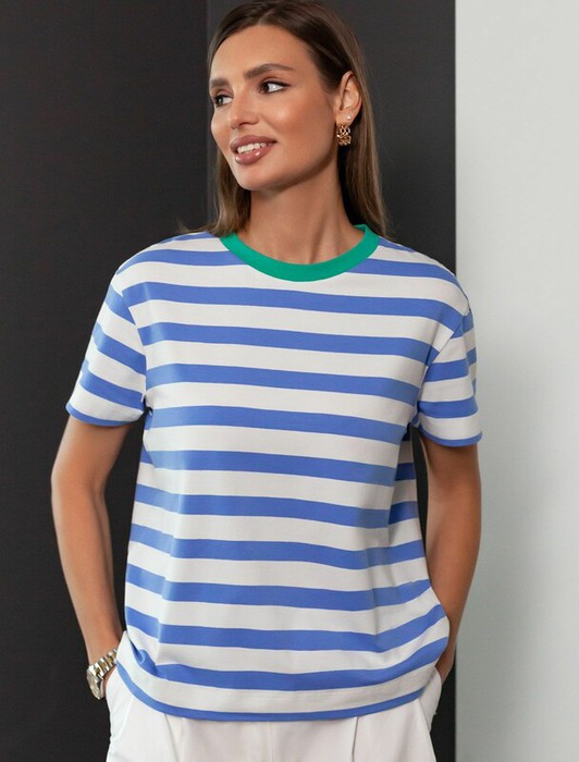 Базовая футболка в бело-синюю полоску выполнена из премиального дышащего хлопка с добавлением эластана. Эта футболка идеально подходит для создания стильного образа. Классический вариант на лето или как нижний слой в прохладное время года.Футболка отлично держит форму и не теряет привлекательности даже после многочисленных стирок. Базовая полосатая футболка с ярким акцентом легко комбинируется с различными предметами гардероба и станет неотъемлемой частью вашего образа. Футболка из натурального хлопка идеально подойдет для создания стильных и молодежных образов. Модная футболка в полоску – это возможность выразить себя и подчеркнуть свою уникальность.