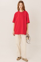 Футболка выполнена из трикотажа в широкий рубчик. Модель с круглым вырезом.  Эластичный хлопковый трикотаж сидит по фигуре, не сковывает движений и очень комфортный в носке. Фактура вертикальных полос визуально стройнит и вытягивает силуэт. Базовое изделие хорошо впишется в любой гардероб. Идеально подходит для многослойных образов.