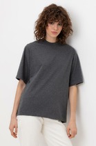 Футболка выполнена из трикотажа в широкий рубчик. Базовая модель с круглым вырезом и рукавом до локтя. Эластичный хлопковый трикотаж сидит по фигуре, не сковывает движений и очень комфортный в носке. Фактура вертикальных полос визуально стройнит и вытягивает силуэт. Базовое изделие хорошо впишется в любой гардероб. Идеально подходит для многослойных образов в базовый гардероб.