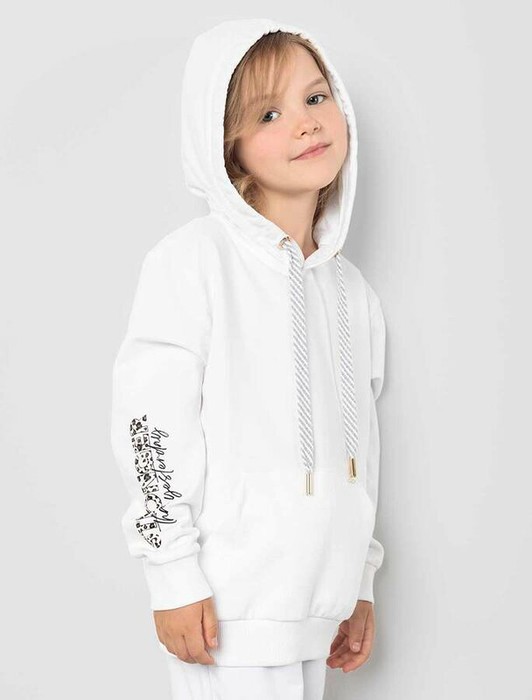 Совместные покупки Каменск-Уральский Детская одежда Джемперы, свитеры — 24.03 Vilatte Худи из премиального футера с принтом F49.407 белый