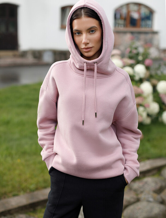 Уютное худи пыльно-розового цвета с цельнокроенным капюшоном и спущенной линией плеча создано для комфорта в холодную погоду. Модель выполнена из премиального футера трехнитки с мягким начесом, что обеспечивает дополнительное тепло и приятные ощущения при носке. Глубокий капюшон дополнен шнуром для регулировки объема, что обеспечивает отличную защиту от ветра и холода, а серебристая фурнитура добавляет стильный акцент к современному худи. Эластичные манжеты на рукавах и по низу обеспечивают дополнительную защиту от продувания, способствуя сохранению тепла внутри. Натуральный хлопок гарантирует дышащий эффект, позволяя сохранять оптимальный микроклимат тела даже при длительном ношении. Благодаря эластану в составе повседневное худи подходит для активного отдыха, вы будете чувствовать себя свободно в любой ситуации.