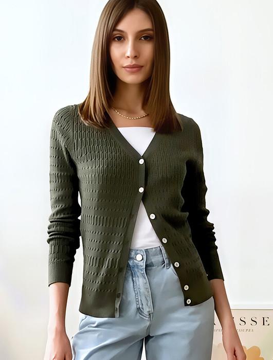 Vilatte Кардиган тонкой ажурной вязки из хлопка и вискозы D31.134 темно-оливковы