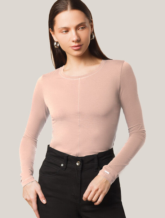 27.03 Vilatte Лонгслив из премиального хлопка с эластаном D49.116 пудра