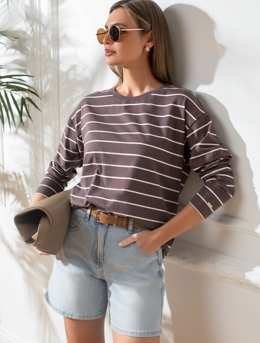 Vilatte Лонгслив с принтом из премиального хлопка с эластаном D49.148 кофе-белый