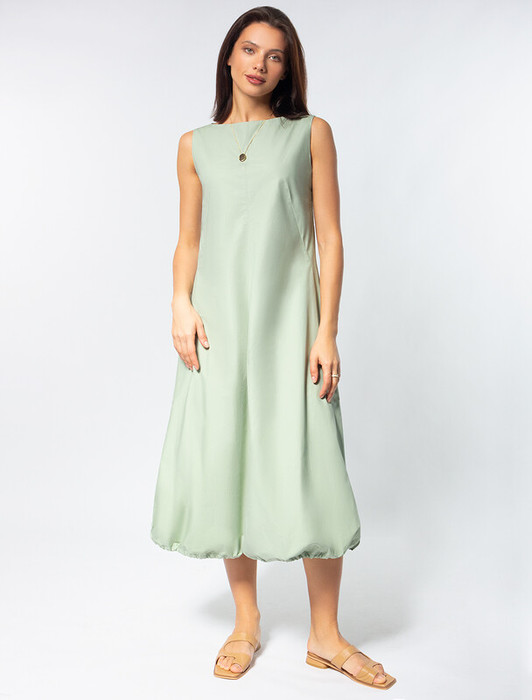 Трендовое платье-баллон выполнено из плотного поплина. Низ изделия сделан на кулиске, что позволяет регулировать форму, используя платье по-разному в зависимости от образа. Материал прочный и износостойкий, но при этом мягкий и удобный, отлично подходит для повседневной носки, гарантируя абсолютный комфорт.