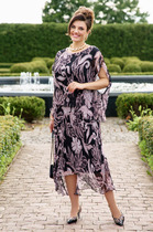 Платье с глубоким V-вырезом и рукавом «летучая мышь» выполнено из тончайших нитей плотного сатина, плетение которых создает полуматовый блеск, напоминающий натуральный шёлк. Модель с длинными глубокими вытачками спереди и сзади выглядит скульптурно, но за счет струящейся ткани сохраняется плавность силуэта. Ткань почти не мнется и имеет легкий вес. Комфортная длина ниже колена и застежка на молнию.