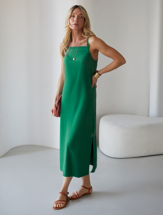 Платье выполнено из премиального хлопка. Прямой силуэт подходит любому типу фигуры. На спине расположена металлическая нашивка - логотип бренда. Самое высокое качество хлопковых волокон с добавлением эластана. Идеально держит форму и сохраняет внешний вид в течение долговременного использования.