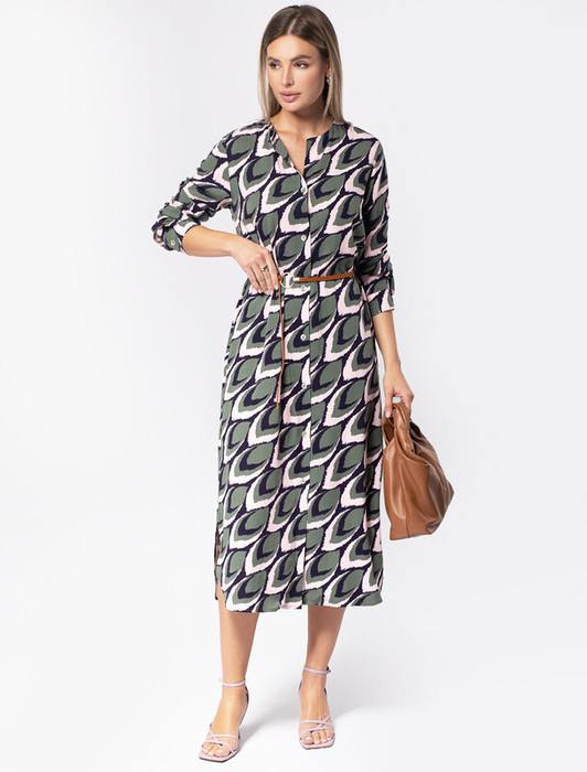 Заказать 22.03 Vilatte Платье из премиальной вискозы-твила D22.189 оливковый-пудровый