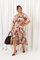Vilatte Платье из сетки с подкладкой D22.238 коричневый-бежевый змея