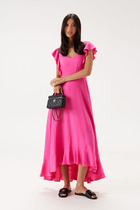 Элегантное платье прямого кроя черного цвета выполнено из воздушной сетчатой ткани с прозрачными рукавами, придающими образу лёгкую игривость. Мягкая вискозная подкладка обеспечивает комфорт, сохраняя при этом эффект полупрозрачности. Универсальный черный цвет делает платье идеальным для базового гардероба.
