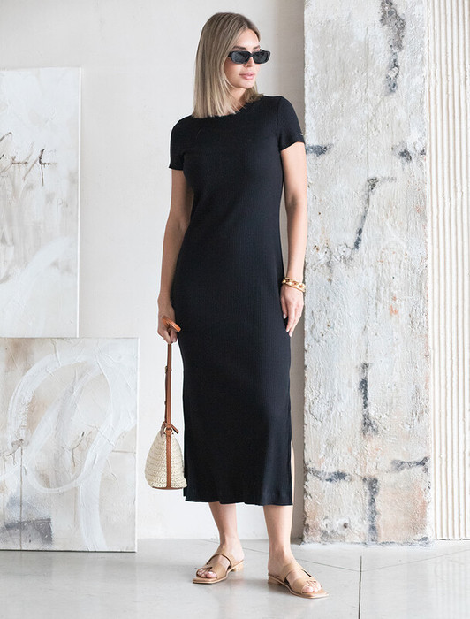 Vilatte Платье из трикотажа в широкий рубчик D42.228 черный