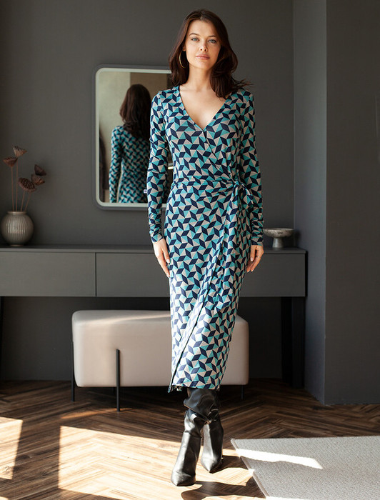 — 22.03 Vilatte Платье на запАх из трикотажной вискозы с эластаном D42.226 сине-з