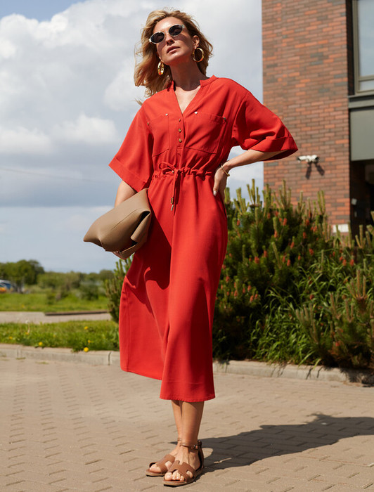 Совместные покупки Каменск-Уральский Женская одежда Платья — 27.03 Vilatte Платье-рубашка из плотного лиоцелла D22.248 терракотовый