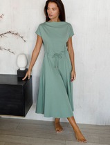 Платье тонкой вязки выполнено из хлопка. Лаконичная модель с высоким воротом как у водолазки дополнена манжетами с золотистыми пуговицами. Изделие свободно сидит по фигуре и не сковывает движений. Мягкая пряжа очень приятная к телу не колется и сохраняет тепло при этом не перегревая.