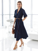 Совместные покупки Каменск-Уральский Женская одежда Платья — Vilatte Платье в стиле сафари с отложным воротником D22.253 синий
