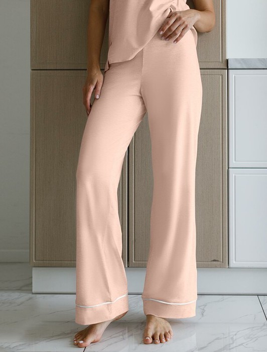 Совместные покупки Каменск-Уральский Женская одежда Домашняя одежда — Vilatte Прямые брюки из эластичного хлопка с контрастным кантом D44.120 розовый