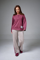 Vilatte Прямые брюки из фактурного трикотажа в рубчик D44.121 кофейный меланж