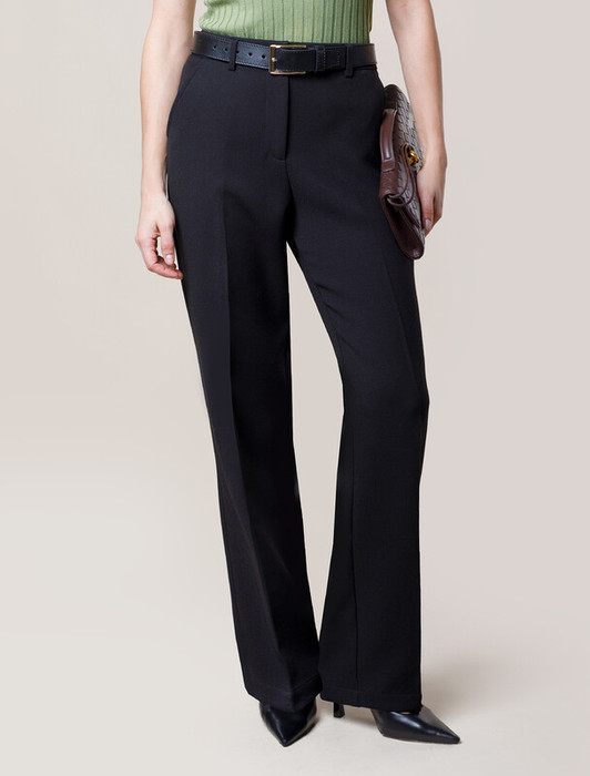 Брюки прясого кроя выполнены из супер-плотной эластичной поливискозы. Модель ткань идеально подойдет для повседневных образов и впишется в офисный дресс код. Изделие с высокой посадкой визуально стройнит и вытягивает силуэт, удлиняет ноги.  Свободный силуэт подходит для любой фигуры.